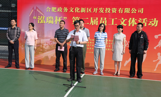 為創(chuàng)建健康和諧的企業(yè)文化,增強(qiáng)企業(yè)凝聚力,豐富公司干部職工的文體生活,2016年9月23日上午,政投公司“泓瑞杯”第二屆員工文體活動(dòng)開幕式在天鵝湖健身中心拉開舉行,市國資委領(lǐng)導(dǎo)吳松、陳郁、朱榮萍、袁寧、康震紀(jì);政投公司領(lǐng)導(dǎo)班子成員陳杰、陳繼良、文良武、楊興武、羅欽,公司各部門、所屬子公司、委托運(yùn)營單位負(fù)責(zé)人及部分參賽員工代表參加開幕式。開幕式由政投公司黨委委員、紀(jì)委書記陳繼良主持,政投公司黨委書記、董事長、總經(jīng)理陳杰致辭,市國資委副主任、黨委委員吳松宣布活動(dòng)開幕。