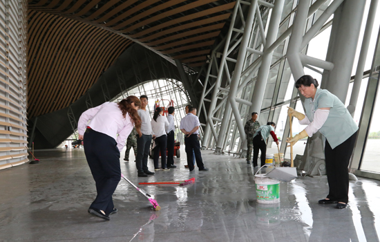 為迎接本屆中博會(huì)暨徽商大會(huì),濱湖會(huì)展中心年初即成立了工作領(lǐng)導(dǎo)小組,全員參與。將重點(diǎn)工作劃分為工程改造、現(xiàn)場(chǎng)保障、后勤服務(wù)等幾大板塊,對(duì)應(yīng)設(shè)立工作分組,各分組既有科學(xué)分工,又能通力配合,形成無縫對(duì)接、循序漸進(jìn)的工作機(jī)制。進(jìn)入四、五月,領(lǐng)導(dǎo)小組通過“一日一報(bào)”、“三天一會(huì)”的形式,及時(shí)反饋信息,緊跟工作進(jìn)度,就地解決問題,確保會(huì)場(chǎng)以最佳的狀態(tài)迎接來自五湖四海的客人。
