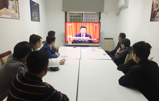 2017年 10月18日上午9時,工程管理部泓瑞嘉瓏酒店項目部組織施工、監(jiān)理等單位10余名黨員在項目現(xiàn)場會議室觀看中國共產(chǎn)黨第十九次全國代表大會開幕會實況,第一時間了解黨代會會議相關(guān)內(nèi)容,聆聽習(xí)近平總書記的報告,深刻學(xué)習(xí)領(lǐng)會總書記所作大會報告精神。