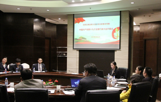 2017年10月18日上午北京時(shí)間9時(shí),中國(guó)共產(chǎn)黨第十九次全國(guó)代表大會(huì)在北京隆重召開(kāi),為迎接這一盛會(huì),合肥泓瑞金陵大酒店組織全體黨員、積極分子及中層以上管理人員觀看大會(huì)開(kāi)幕盛況。