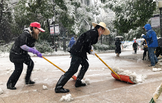 從深夜到黎明,以雪為令,堅(jiān)守崗位,破冰掃雪,政文外灘物業(yè)人在行動!