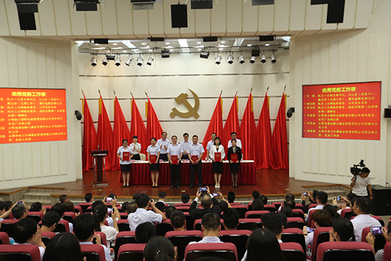 為慶祝中國共產黨成立97周年,重溫黨的光輝歷史,弘揚黨的優(yōu)良傳統(tǒng)和作風,激勵基層黨組織和廣大黨員向先進學習、向先進看齊,2018年6月27日下午,公司在安徽國際會展中心報告廳召開慶祝建黨97周年暨“兩優(yōu)一先”表彰大會。公司領導班子成員陳杰、陳繼良、文良武、楊興武、羅欽出席會議,公司機關中層干部,各所屬子公司經營班子成員、黨務部門及群團組織負責人,公司各基層黨組織全體黨員、入黨積極分子約130人參加活動。會議由公司黨委委員、董事、紀委書記陳繼良主持。