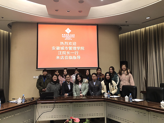 2018年12月13日下午,泓瑞金陵大酒店為來自安徽城市管理學(xué)院舉辦了座談會(huì),酒店人力資源部總監(jiān)丁奕女士參加了會(huì)議,此次座談會(huì)還邀請(qǐng)安徽城市管理學(xué)院汪欣院長參加。同時(shí),安徽城市管理學(xué)院的10名新生來酒店參觀。