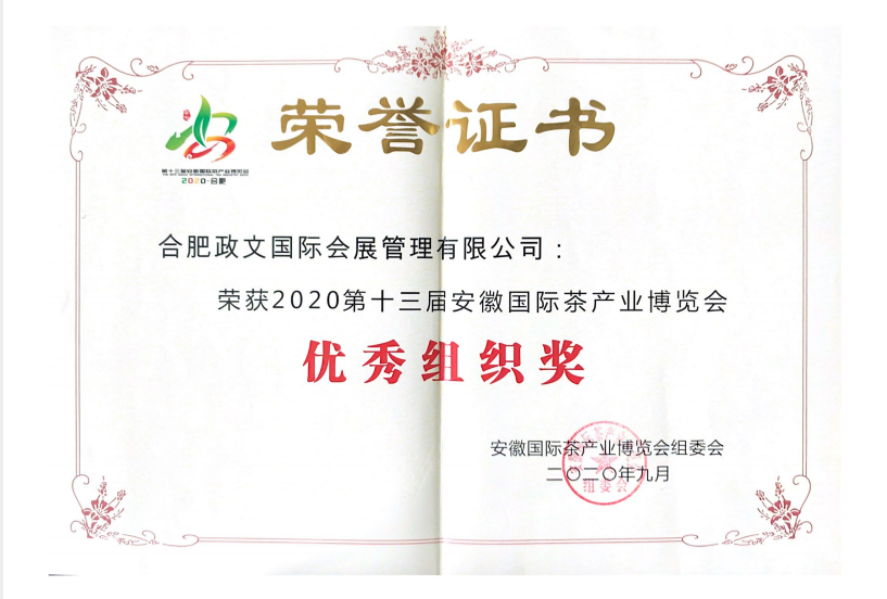 日前,第十三屆安徽國際茶產(chǎn)業(yè)博覽會獎項評選結(jié)果公布,政文會展榮獲優(yōu)秀組織獎,政文會展物業(yè)部慈代靜、展覽部常琪榮獲茶博會籌備工作先進(jìn)個人。