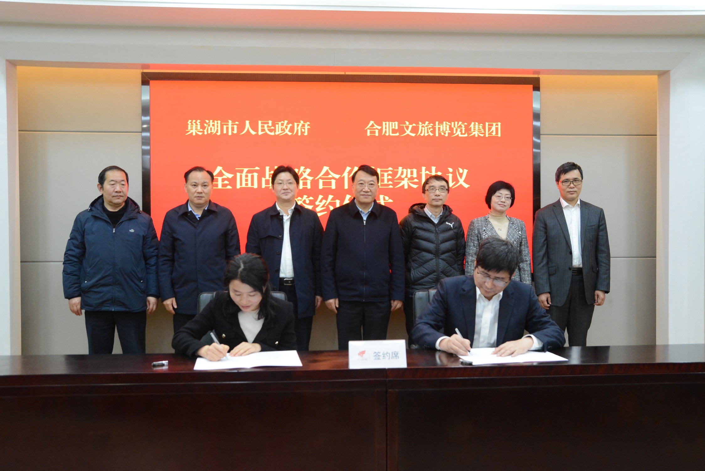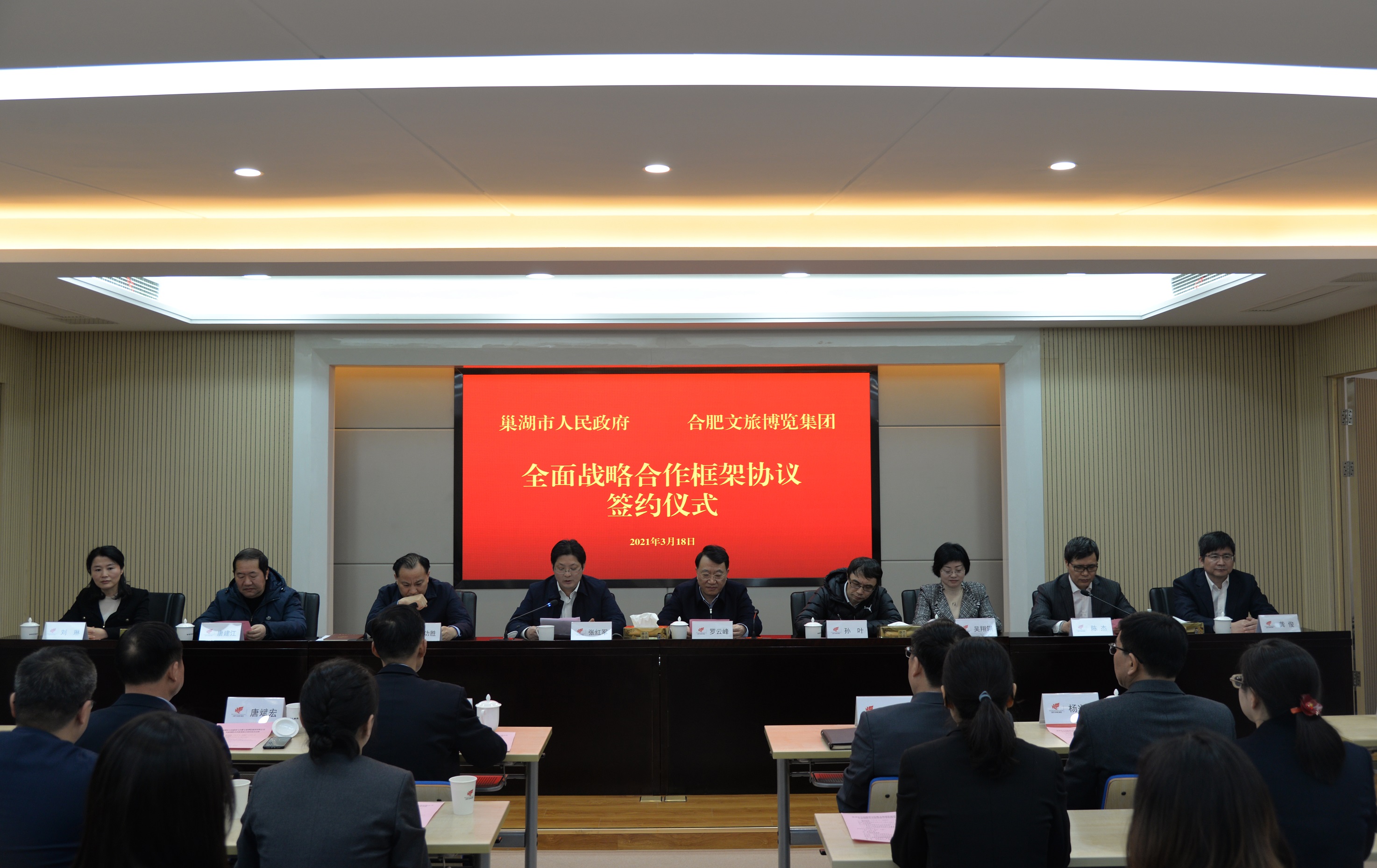 3月18日,集團(tuán)與巢湖市人民政府簽署全面戰(zhàn)略合作框架協(xié)議。合肥市委副書記羅云峰,中央廣播電視總臺安徽總站召集人孫葉,巢湖市委書記張紅軍,合肥市國資委副主任吳翔翎,合肥市文旅局副局長唐建江,巢湖市副市長劉琳,集團(tuán)黨委書記、董事長陳杰,黨委副書記、董事、總經(jīng)理龔俊及其他領(lǐng)導(dǎo)班子成員,集團(tuán)中層干部以及巢湖相關(guān)部門負(fù)責(zé)人參加簽約儀式。儀式由巢湖市委副書記、市長汪功勝主持。