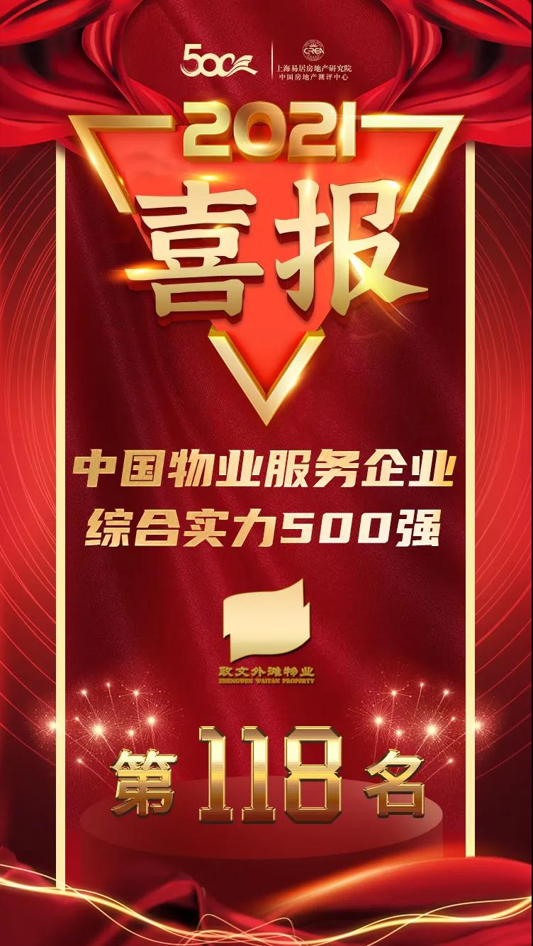 2021中國物業(yè)服務(wù)企業(yè)綜合實力500強公布:合肥市政文外灘物業(yè)位列第118位,躍升26位!