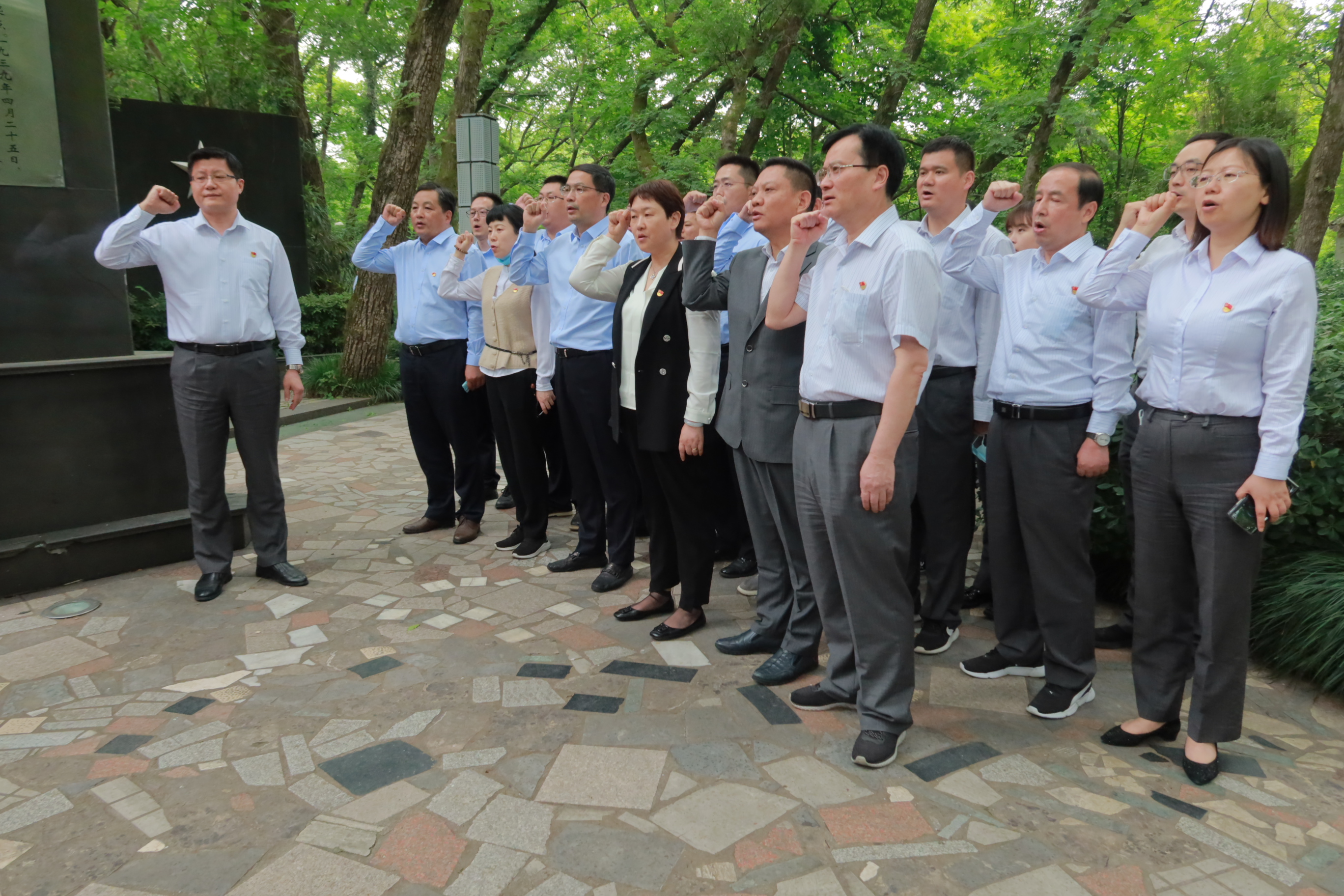 活動(dòng)第二站是參觀新四軍江北指揮部。廣大黨員認(rèn)真聆聽(tīng)了革命烈士的英勇事跡,詳細(xì)了解新四軍發(fā)展史,緬懷老一輩無(wú)產(chǎn)階級(jí)革命先烈的英雄事跡,特別被葉挺的著名詩(shī)句“云中美人霧里山,立馬湯池君試看,千里江淮任馳騁,飛渡大江換人間”深深地感染,進(jìn)一步增強(qiáng)了大家的歷史責(zé)任感和使命感。隨后,全體成員在紀(jì)念館內(nèi)重溫了入黨誓詞,用鏗鏘有力的誓言表達(dá)了對(duì)黨忠誠(chéng)、為黨盡責(zé)的堅(jiān)定決心。