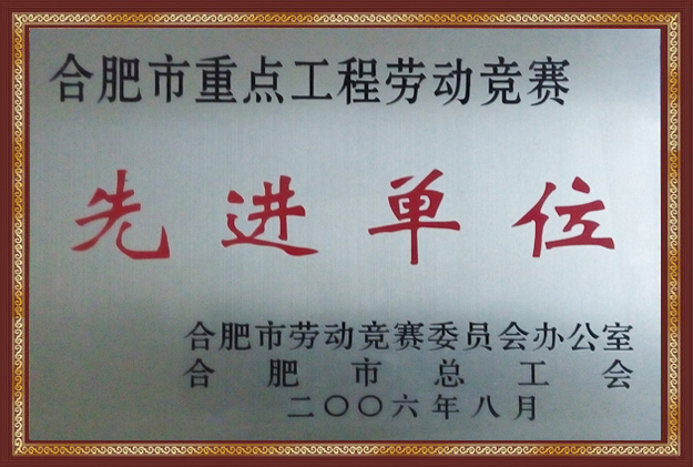 合肥市重點(diǎn)工程勞動(dòng)競(jìng)賽“先進(jìn)單位”榮譽(yù)稱號(hào)