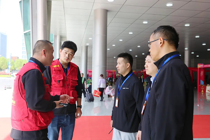 安保人員在人員密集場所持續(xù)巡查,排查各類隱患,維護(hù)展會(huì)的安全秩序。