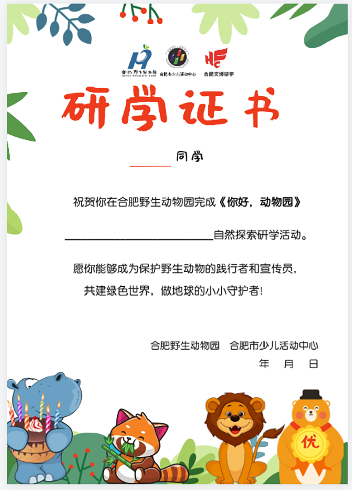 本研學(xué)活動(dòng)由合肥市少年宮蜀山片區(qū)--合肥市少兒活動(dòng)中心聯(lián)合合肥野生動(dòng)物園、合肥文博研學(xué)共同推出。