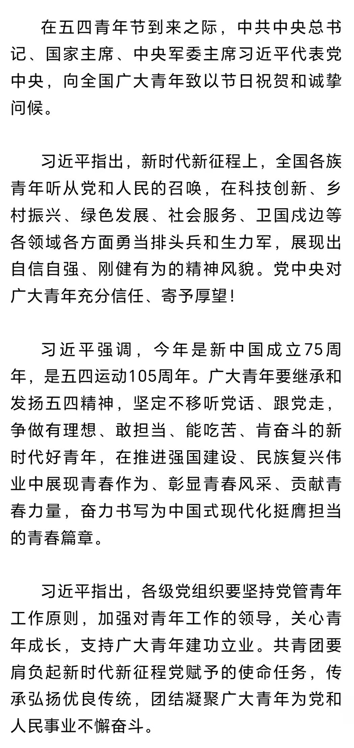 向全國廣大青年致以節(jié)日祝賀和誠摯問候