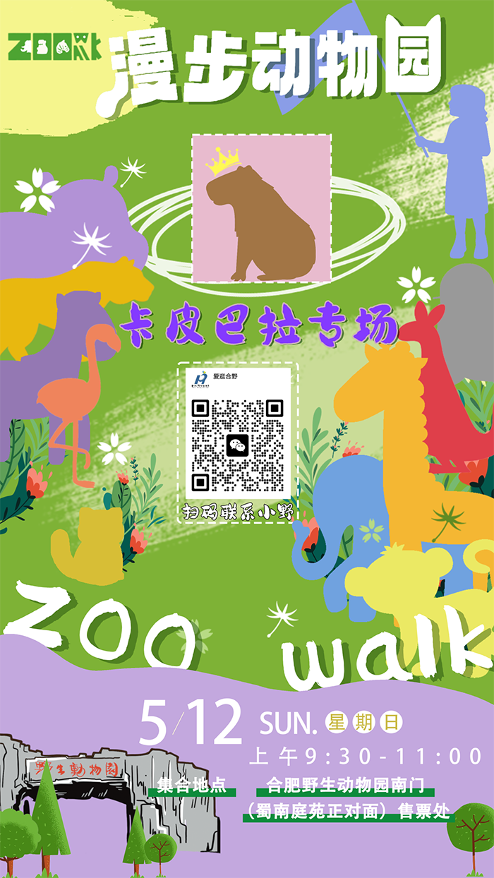 掃碼聯(lián)系合小野入活動(dòng)群,來動(dòng)物園參加5月12日Zoowalk卡皮巴拉專場:通過觀察動(dòng)物自然行為,參與動(dòng)物科普互動(dòng),用講故事的方式帶領(lǐng)大家和一起了解和認(rèn)識(shí)水豚(卡皮巴拉)。