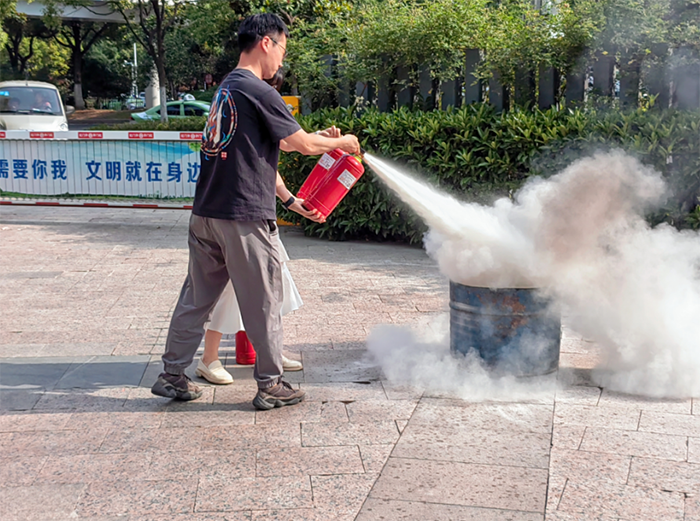 隨后,在消防專家的指導(dǎo)下,大家按照剛學(xué)的滅火器“一提、二拔、三握、四壓”的規(guī)范操作,對(duì)準(zhǔn)火苗根部進(jìn)行滅火演練。整個(gè)演練過程緊張有序,充分展現(xiàn)了員工們的應(yīng)急反應(yīng)能力和團(tuán)隊(duì)協(xié)作精神。