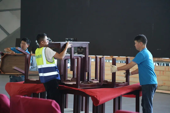 搬運擺放畫屏用于現(xiàn)場氛圍營造