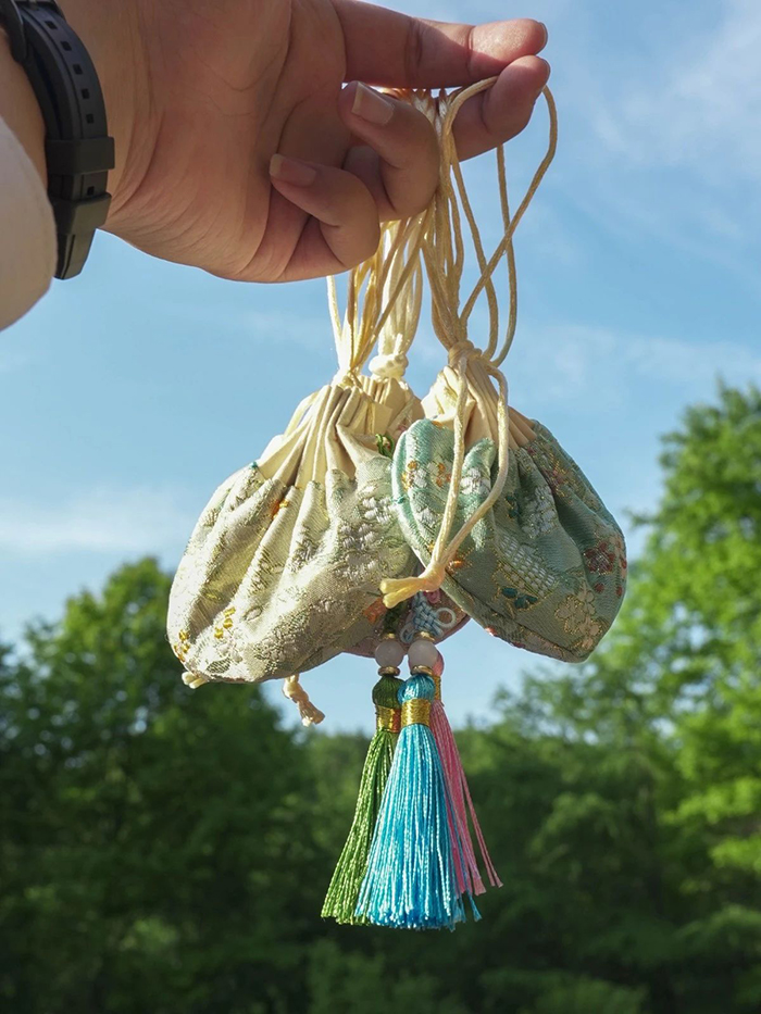 古人佩戴香囊的歷史可以追溯到商周時期,紅綬帶,錦香囊,為表花前意,殷勤贈玉郎。