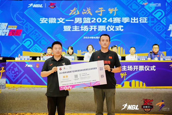 安徽省體育局球類運動管理中心黨總支書記李燕,合肥市體育局黨組書記李仲生,合肥文旅博覽集團黨委副書記、總經(jīng)理尹傳桂,文一集團執(zhí)行總裁寧世明,文一集團副總裁周文鎖,安徽文一男籃董事長、主教練鄭武,合肥體育產(chǎn)業(yè)投資有限公司執(zhí)行董事楊福運,合肥體育產(chǎn)業(yè)投資有限公司總經(jīng)理姜昊出席了當天活動并共同啟動開票儀式。