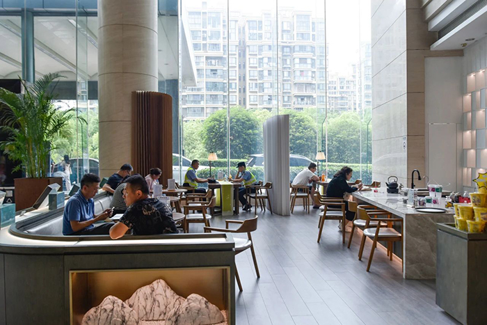 大堂內設有多處茶水區(qū)、考試日程表以及天氣溫馨提示;