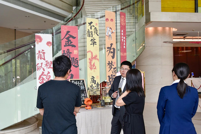 考試期間,家長們等待之余,向工作人員咨詢酒店畢業(yè)季升學宴優(yōu)惠政策,工作人員熱情介紹溝通,讓每一處服務細節(jié)都至臻完美,為考生及家長打造一場難忘的畢業(yè)之旅。