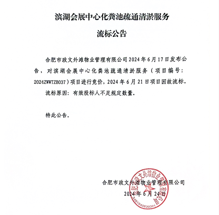 濱湖會展中心化糞池疏通清淤服務流標公告