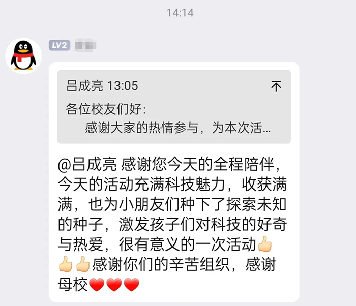 “今天的活動(dòng)很有意義,也為小朋友種下了求知的種子,感謝你們的全程陪伴,辛苦了!”