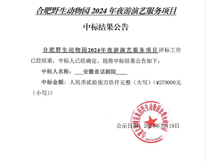 合肥野生動物園 2024年夜游演藝服務項目 中標結(jié)果公告