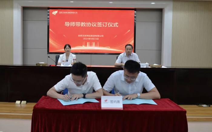 為了做好新員工全周期跟蹤培養(yǎng),集團實施“導師帶教”計劃,為新員工一對一匹配入職導師。開班儀式上,新員工逐一進行自我介紹。導師代表發(fā)言分享工作經(jīng)驗和感悟,鼓勵新員工腳踏實地、多學多問。現(xiàn)場,導師代表與新員工代表簽訂了“導師帶教”協(xié)議。
