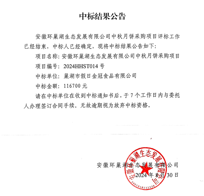 安徽環(huán)巢湖生態(tài)發(fā)展有限公司中秋月餅采購(gòu)項(xiàng)目