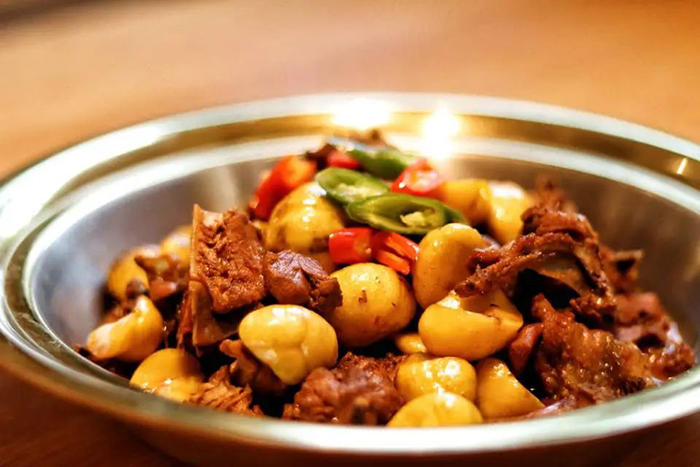 禮遇三:價值88元金秋栗香雞*1份以金秋時節(jié)成熟的板栗為主角搭配農(nóng)家放養(yǎng)的仔雞雞肉鮮嫩多汁 板栗粉糯香甜色澤金黃 香氣撲鼻讓您感受到濃濃的秋意與地道的農(nóng)家美食