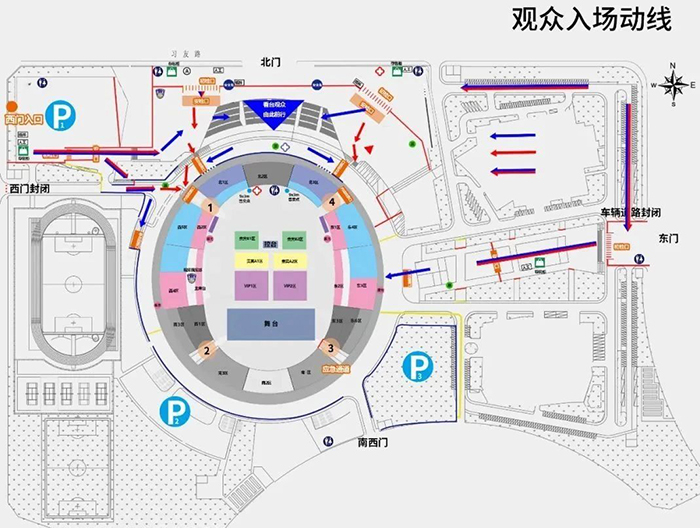 進場觀眾請注意查看現(xiàn)場路面指示牌