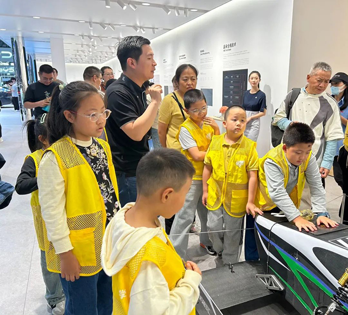 跟隨研學(xué)導(dǎo)師小朋友進(jìn)入車(chē)展現(xiàn)場(chǎng)化身小小偵探家了解“霸都”合肥如何成為新能源汽車(chē)之都化身小小工程師親手制作手搖發(fā)電機(jī)進(jìn)入蔚來(lái)展區(qū),化身小小記者探秘全鋁車(chē)身的鉚接技術(shù)智能化RGV立體庫(kù)以及全自動(dòng)智能設(shè)備和創(chuàng)新工藝等蔚來(lái)黑科技