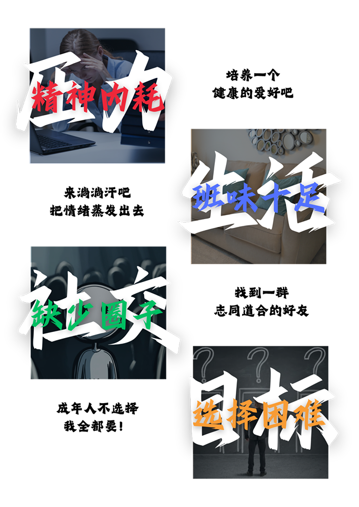 #不僅免費,而且成年人不做選擇,我全都要!本次合體夜校首批學員在10月28日之前,全項目都可以免費試學,沒錯,每個人,每個項目都可以嘗試一次喲!幫助大家挑選到最適合自己、最感興趣的那一個運動項目!03社交“恐懼”份子?不存在!