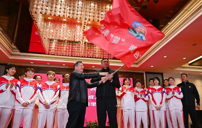 在當天下午的出征儀式上,安徽省體育局副局長劉弢為合肥文旅籃球俱樂部授牌,合肥體育產(chǎn)業(yè)投資有限公司總經(jīng)理姜昊鄭重接牌。在萬眾矚目下,合肥文旅女籃教練團隊及全體球員們逐一登場亮相。