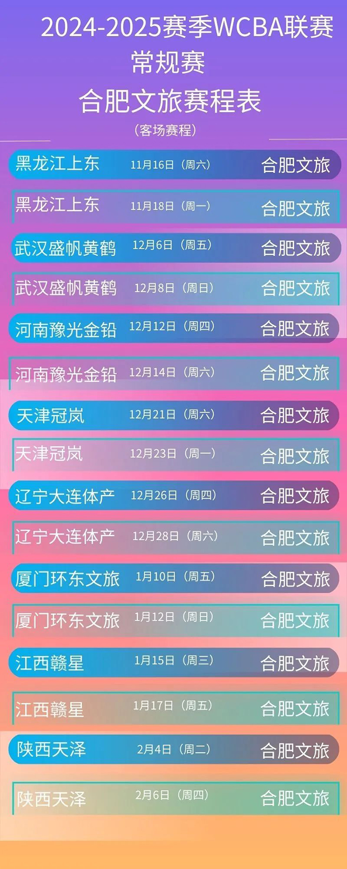 新賽季的首場比賽,合肥文旅將于11月16日赴客場挑戰(zhàn)黑龍江上東女籃,而合肥文旅的首個主場比賽定于11月26日坐鎮(zhèn)合肥體育中心體育館迎來廈門環(huán)東文旅女籃。