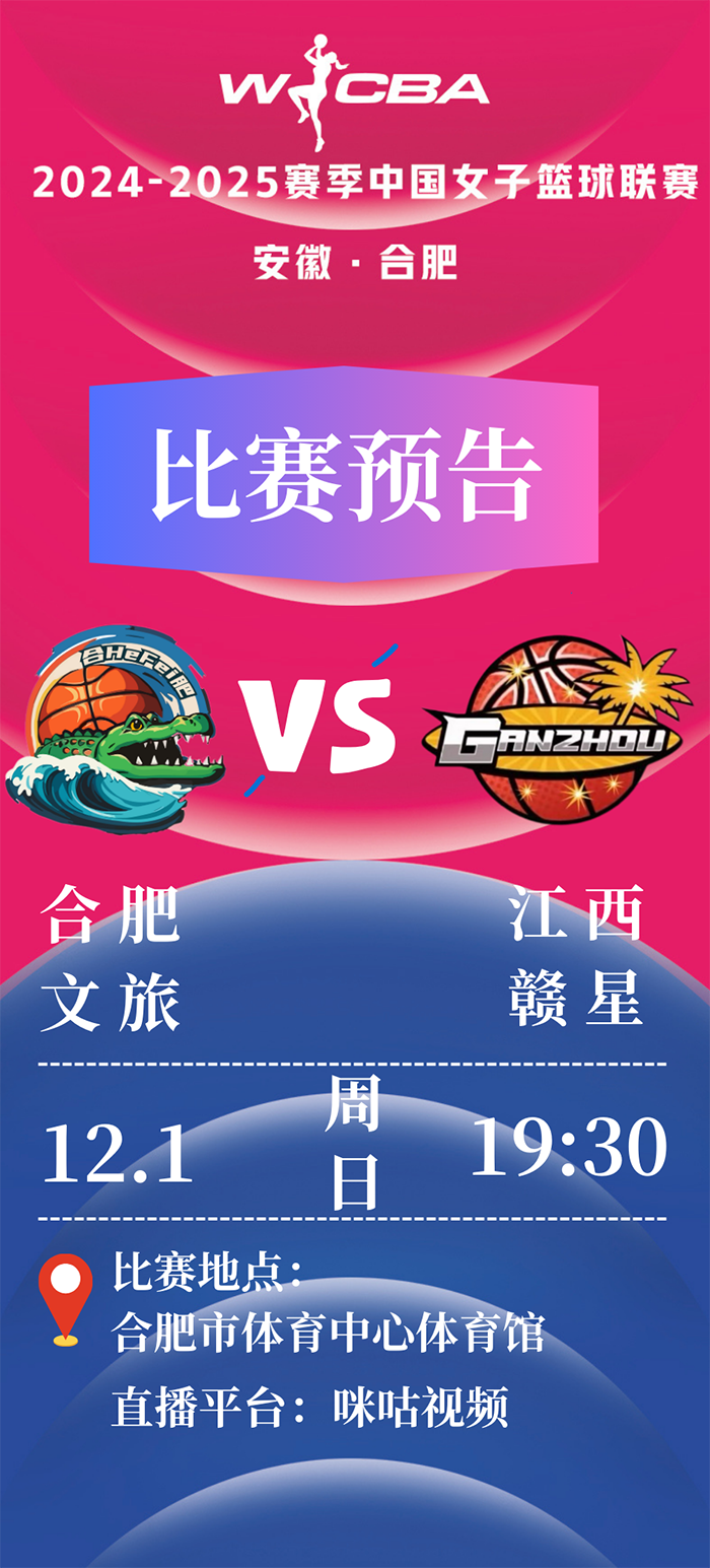 12月1日晚19:30合肥文旅即將在第七輪賽事中迎戰(zhàn)江西贛星