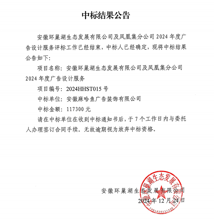 安徽環(huán)巢湖生態(tài)發(fā)展有限公司及鳳凰集分公司2024年度廣告設(shè)計(jì)服務(wù)