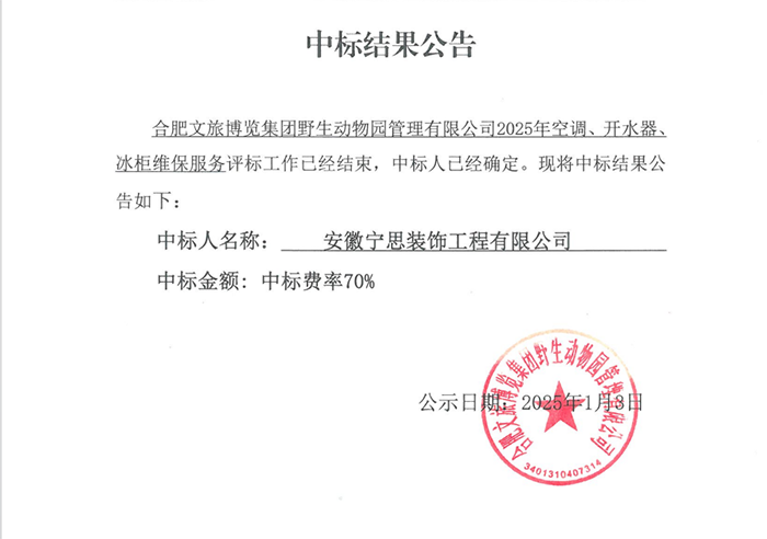 合肥文旅博覽集團野生動物園管理有限公司2025年空調(diào)、開水器、冰柜維保服務(wù)