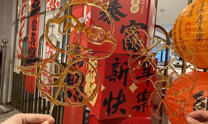 地點:酒店前臺及餐廳內(nèi)容:非遺糖畫DIY,帶著小朋友體驗一下自己做的甜蜜寫對聯(lián)送春聯(lián),親自寫下一份新春祝福,帶走屬于你的定制春聯(lián)糖葫蘆DIY,體驗傳統(tǒng)文化還有個小驚喜是,被選出的優(yōu)秀作品還有小禮品拿喲