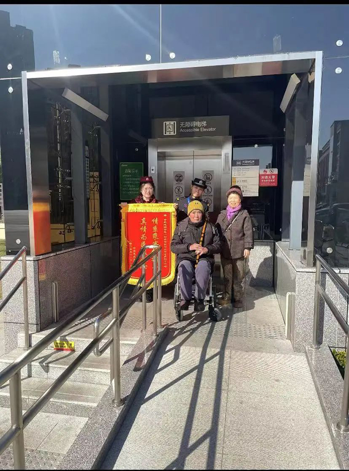 2024年12月28日,安醫(yī)一附院南區(qū)站與李灣站被一股濃濃的溫情所包圍。兩名老年乘客,其中一位行動不便,坐著輪椅,帶著滿滿的感激之情,分別向這兩個站點贈送了錦旗,每一面錦旗都承載著一段深情厚誼。