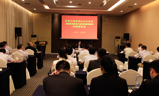 2016年7月29日下午,市國資委黨委委員、紀(jì)委書記朱榮萍到政投公司所屬合肥泓瑞金陵大酒店黨支部作黨課報告。黨課報告由政投公司黨委委員、董事、副總經(jīng)理楊興武主持,市國資委機關(guān)三支部、合肥泓瑞金陵大酒店黨支部黨員,公司及所屬子公司黨務(wù)工作者、機關(guān)部分黨員代表參加黨課報告會。